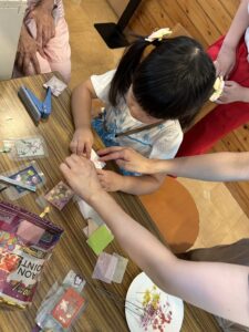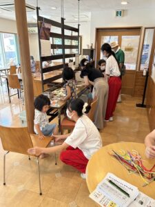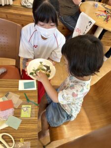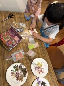 子どもたちも、高校生のボランティアのお姉さんと一緒に押し花のしおりを作って楽しそうでした。