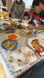 今日も沢山のお客様がおいでくださいました。唐揚げ、おそうめん、おにぎり、スパゲティーなど、ドミノピザ様から沢山のピザも提供していただきありがとうございました。子どもたちも大変喜んでくれました。お持ち帰りのカレー弁当も好評でした。  来月も皆さんのご来店をお待ちしています。