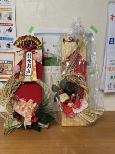 スタバからのお菓子、クリスマスケーキもあり、子ども達は大喜びでした。スタバに反応したのは、子どもよりお母さんだったような… お正月飾りも個性ある作品ができていました。