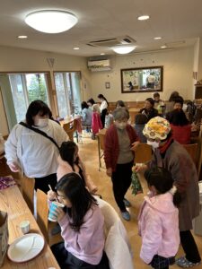 スタバからのお菓子、クリスマスケーキもあり、子ども達は大喜びでした。スタバに反応したのは、子どもよりお母さんだったような…